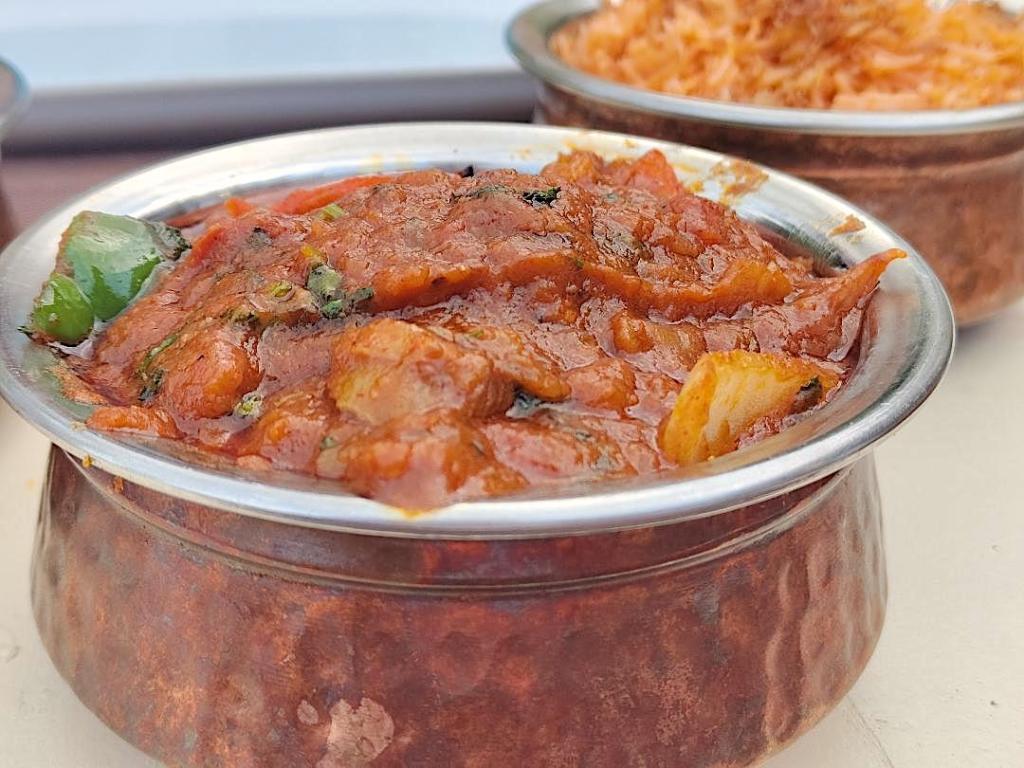 For mains – oh, be still my fluttering foodie heart! A chicken dish – sort of Hyderabadi/masala? – and a silky, complex, gently spicy Lamb Korai. But those descriptions don’t start – or finish – there. Super-fresh flavours, tantalising taste sensations: salt, spice, sweet; soft garlic, peppery heat. Fenugreek here, cloves over there, coriander, cumin and cinnamon all making their presence felt; subtly sensual, complex but gratifyingly congenial. Really? Yes, really – and accompanied by the softest, sweetest, freshest Peshwari I’ve ever encountered and billowing pillows of Pilau too.