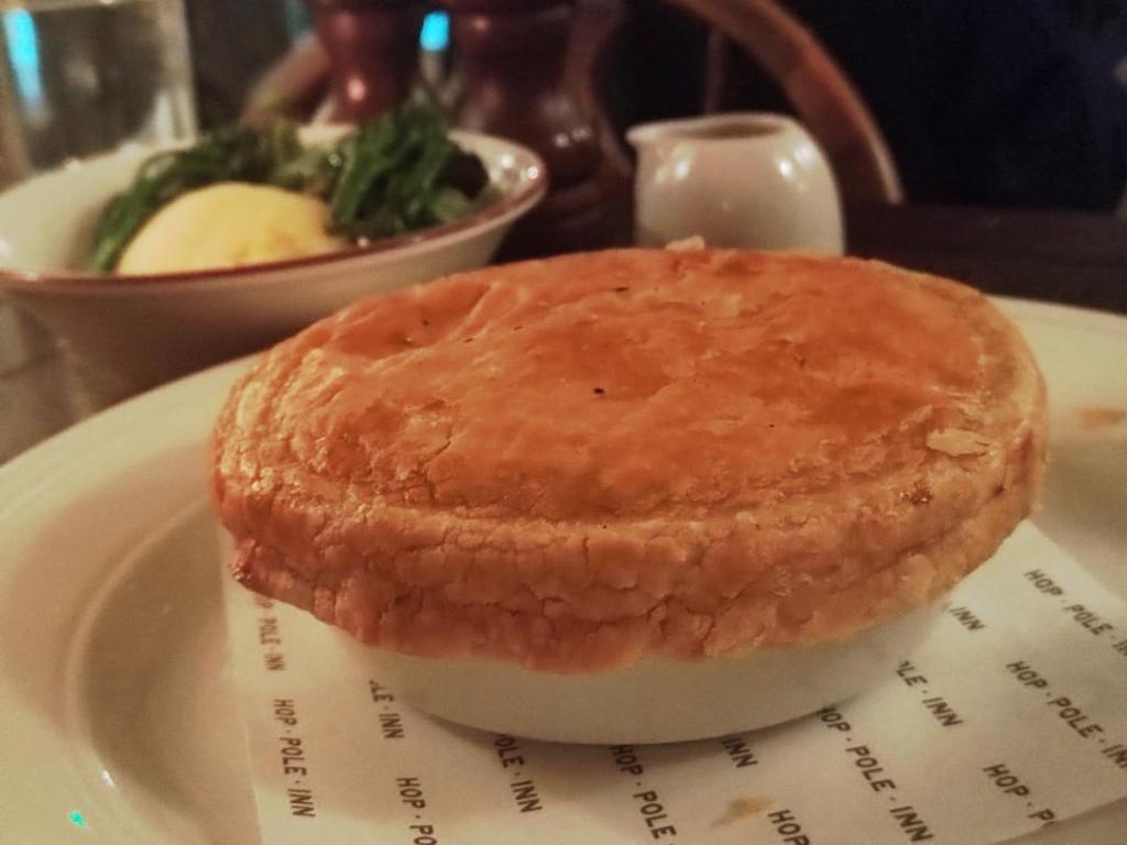 The pie of the day (chicken, on the evening we visited) tasted like a proper pie should taste: super-soft chicken wrapped in rich, perfectly-seasoned gravy tucked under a flaky shortcrust pastry lid and served with a cloud of super-velvety mash. We shared a massively flavoursome sirloin steak too, which proved that ‘cutting like butter’ isn’t just a careworn cliché and came with a softly peppery, refreshingly non-overwhelming peppercorn sauce and fabulously frangible proper chips.
