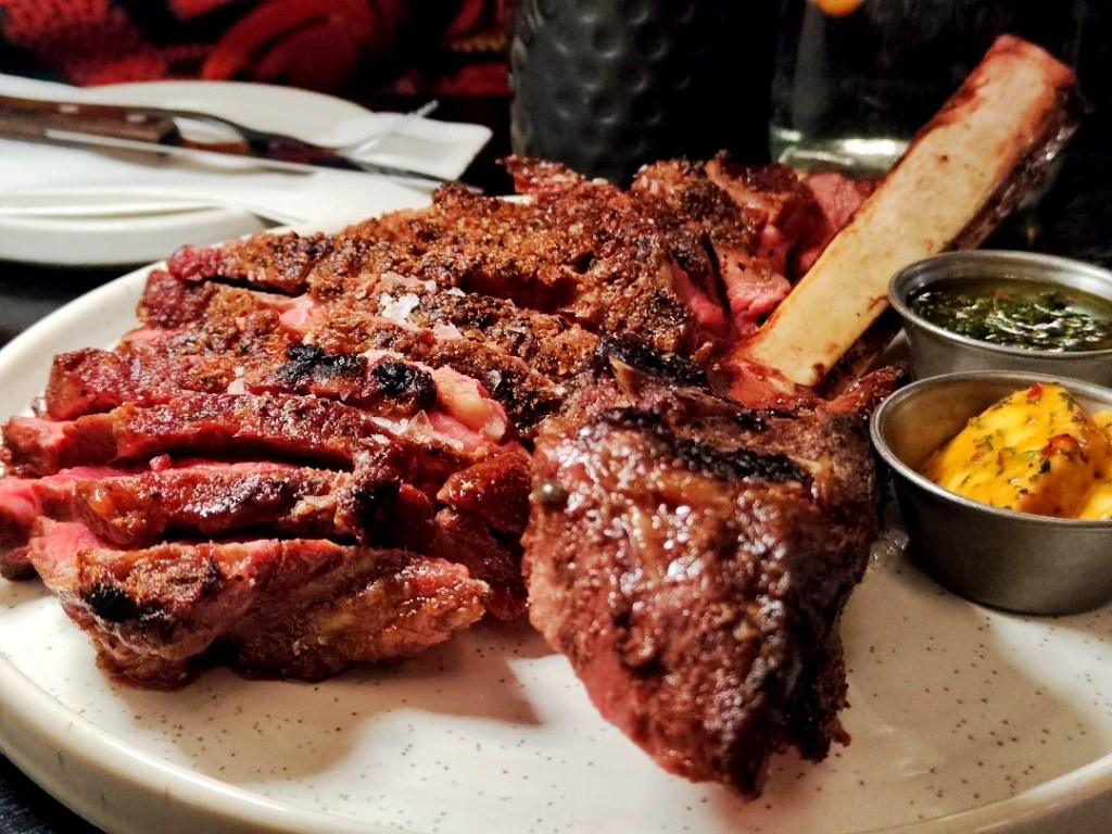 All hail the arrival of the showstopping sharer that is the Tomahawk steak: massive, buttery, intensely flavoursome; robust, smoky, powerfully characterful — cor! We drenched ours in kickin’ Cowboy Butters and vibrant Chimichurri and snaffled perfect fries on the side. We picked our way through a beetroot and butternut squash duo too, the earthiness of the roots luxuriated by whipped ricotta. But oh, Miles’ wild garlic gnocchi! Puffy pillows of bliss, featherlight but satisfyingly bitey and basking in the uniquely aromatic aura of the most heavenly “blink and you’ll miss it” taste of British springtime. By the time you read this review, this dish might have disappeared from Miles’ menu… but it’ll remain deeply embedded in my foodie memory bank for a very long time to come.