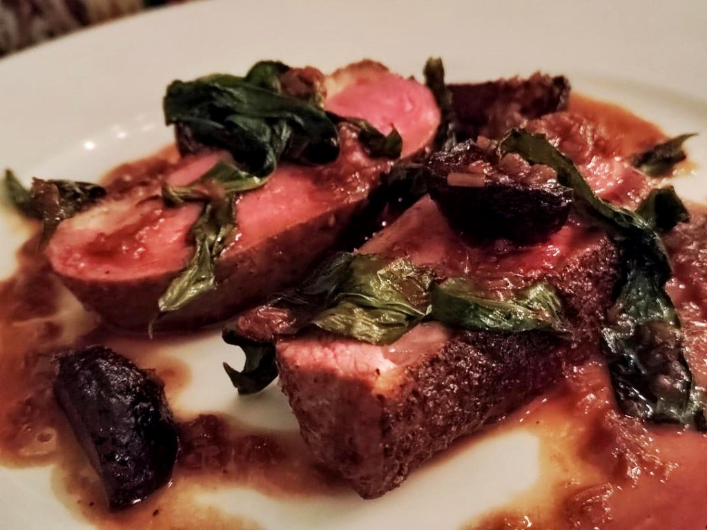 On from those soothingly gratifying openers, the subtly gamey aspect of my sweet, tender Creedy Carver duck breast came perfectly complimented by earthy beetroot and delicate wild garlic that welcomed the arrival of spring to the dish, a light but complex red wine sauce bringing the whole ensemble together. But would Sam mind if I ordered a side of black pudding mash with that, nicked from the chicken dish elsewhere on the menu? If he breathed a sigh of exasperation at a diner disrupting his carefully considered combinations, I didn’t hear it – and oh, that mash can only be described as deeply umami bliss. Meanwhile, across the table…